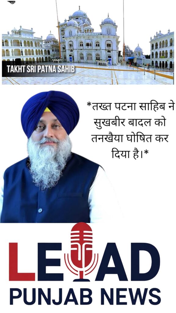 LEADPUNJABNEWS:рддрдЦреНрдд рдкрдЯрдирд╛ рд╕рд╛рд╣рд┐рдм рдиреЗ рд╕реБрдЦрдмреАрд░ рд╕рд┐рдВрд╣ рдмрд╛рджрд▓ рдХреЛ рддрдЦреНрдд рдХреЗ рдЕрдВрджрд░реВрдиреА рдорд╛рдорд▓реЛрдВ рдореЗрдВ рджрдЦрд▓рдВрджрд╛рдЬреА рдХрд░рдиреЗ рдХреЗ рдЖрд░реЛрдк рдореЗрдВ рддрдирдЦреЗрдпрд╛ рдШреЛрд╖рд┐рдд рдХрд░ рджрд┐рдпрд╛ рд╣реИред рдЙрдиреНрд╣реЗрдВ рдкреЗрд╢ рд╣реЛрдиреЗ рдХреЗ рд▓рд┐рдП рд╕рдорди рднреА рднреЗрдЬрд╛ рдЧрдпрд╛ рд╣реИред рддрдЦреНрдд рдкрдЯрдирд╛ рд╕рд╛рд╣рд┐рдм рдХреА рдУрд░ рд╕реЗ рдмрд╛рд░-рдмрд╛рд░ рд╕рдорди рдЬрд╛рд░реА рдХрд┐рдП рдЬрд╛рдиреЗ рдХреЗ рдмрд╛рд╡рдЬреВрдж рд╕реБрдЦрдмреАрд░ рд╕рд┐рдВрд╣ рдмрд╛рджрд▓ рдХреЗ рдкреЗрд╢ рди рд╣реЛрдиреЗ рдкрд░ рдмрд┐рд╣рд╛рд░ рд╕реНрдерд┐рдд рддрдЦреНрдд рдХреЗ рдкрдВрдЬ рдкреНрдпрд╛рд░реЛрдВ рдиреЗ рдЙрдиреНрд╣реЗрдВ рддрдирдЦреЗрдпрд╛ рдШреЛрд╖рд┐рдд рдХрд░ рджрд┐рдпрд╛ рд╣реИред